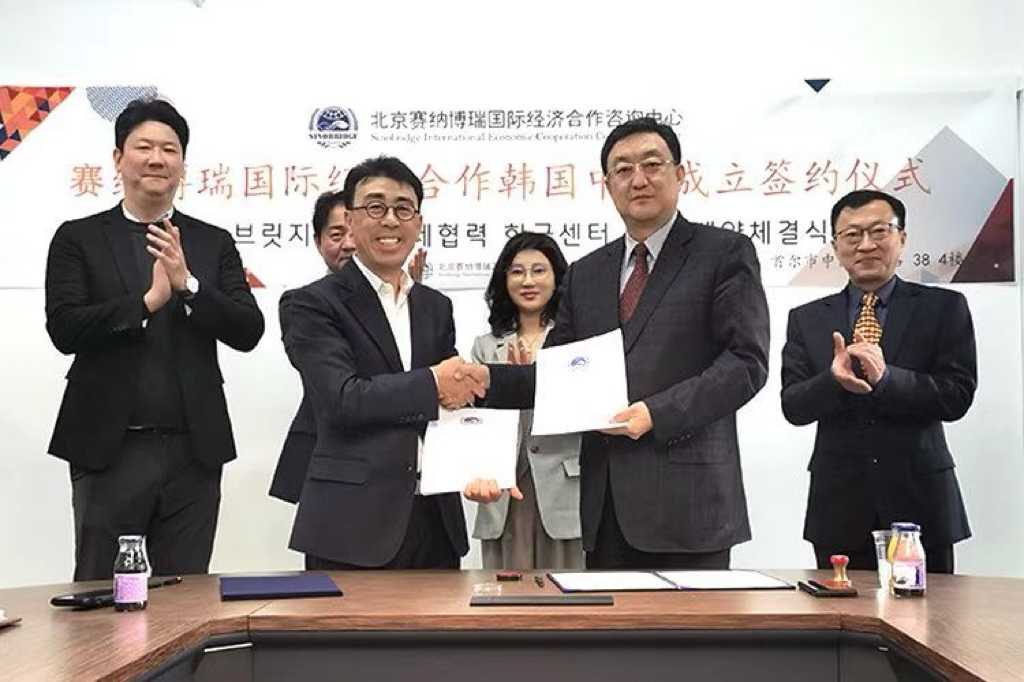 在韩国首尔与韩中文旅金成秀社长签署韩国中心合作协议,与韩国总统府政要交流座谈