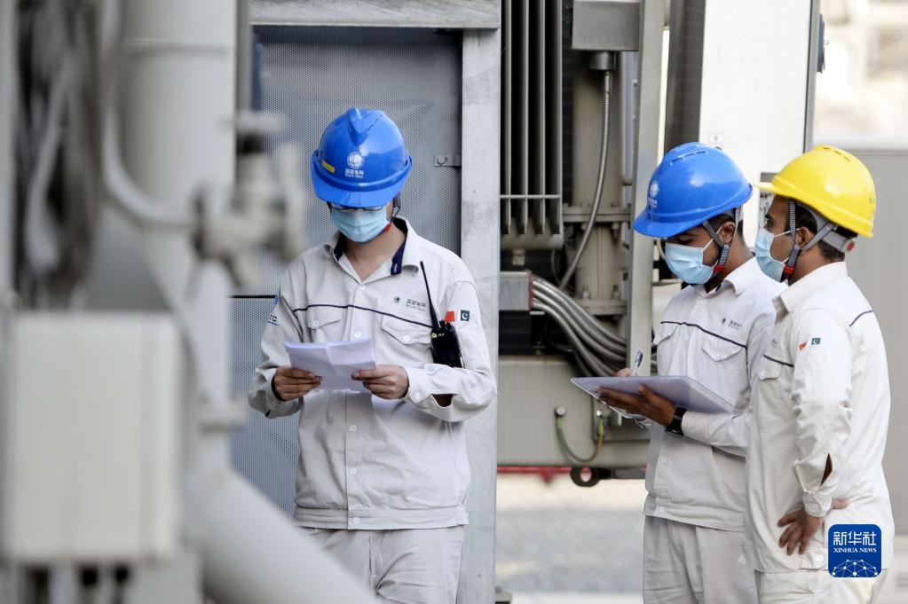 5月25日,巴基斯坦运维人员在默蒂亚里-拉合尔(默拉)直流输电项目的拉合尔换流站工作。新华社发(艾哈迈德·卡迈勒摄)