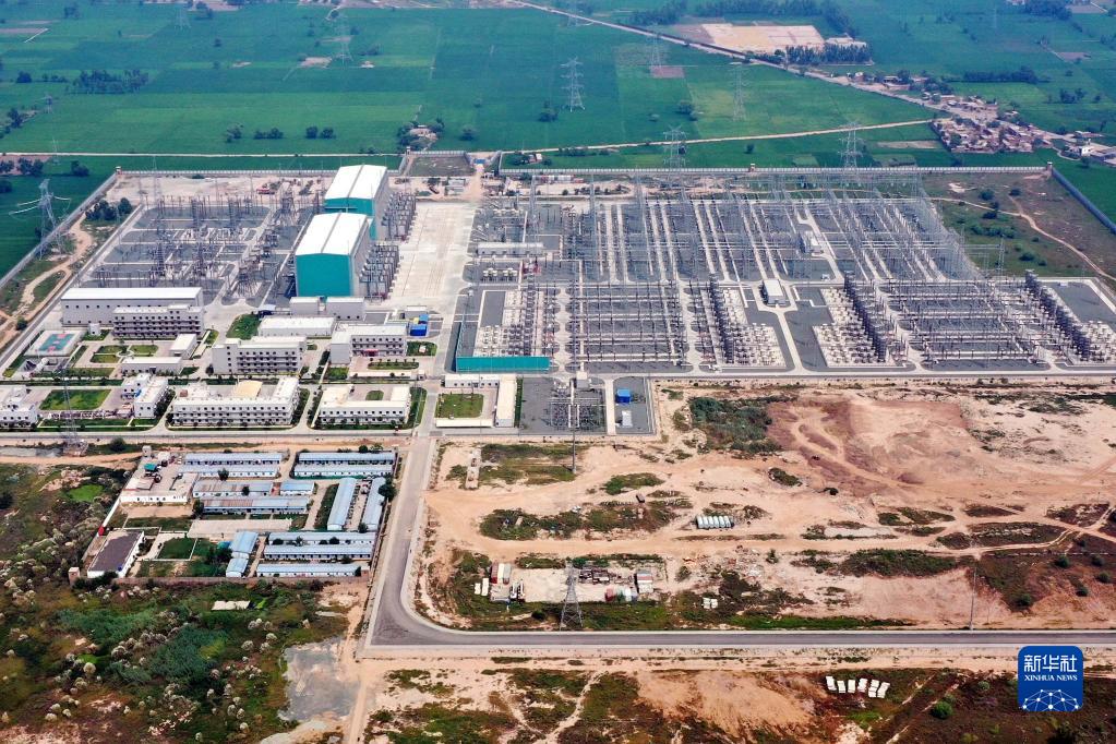 这是2021年9月9日拍摄的巴基斯坦默蒂亚里-拉合尔(默拉)直流输电项目的拉合尔换流站(无人机照片)。新华社发(中国国家电网有限公司供图)