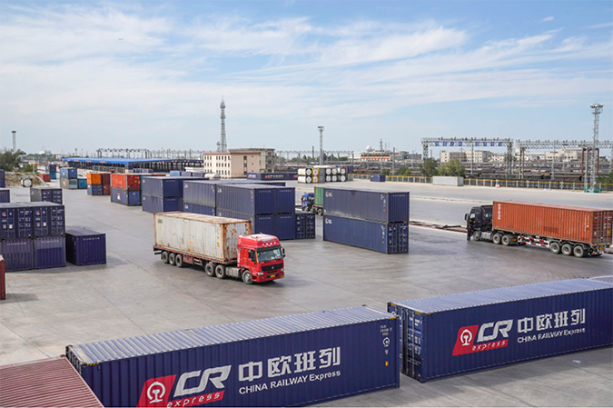 中欧班列(乌鲁木齐)集结中心一角。